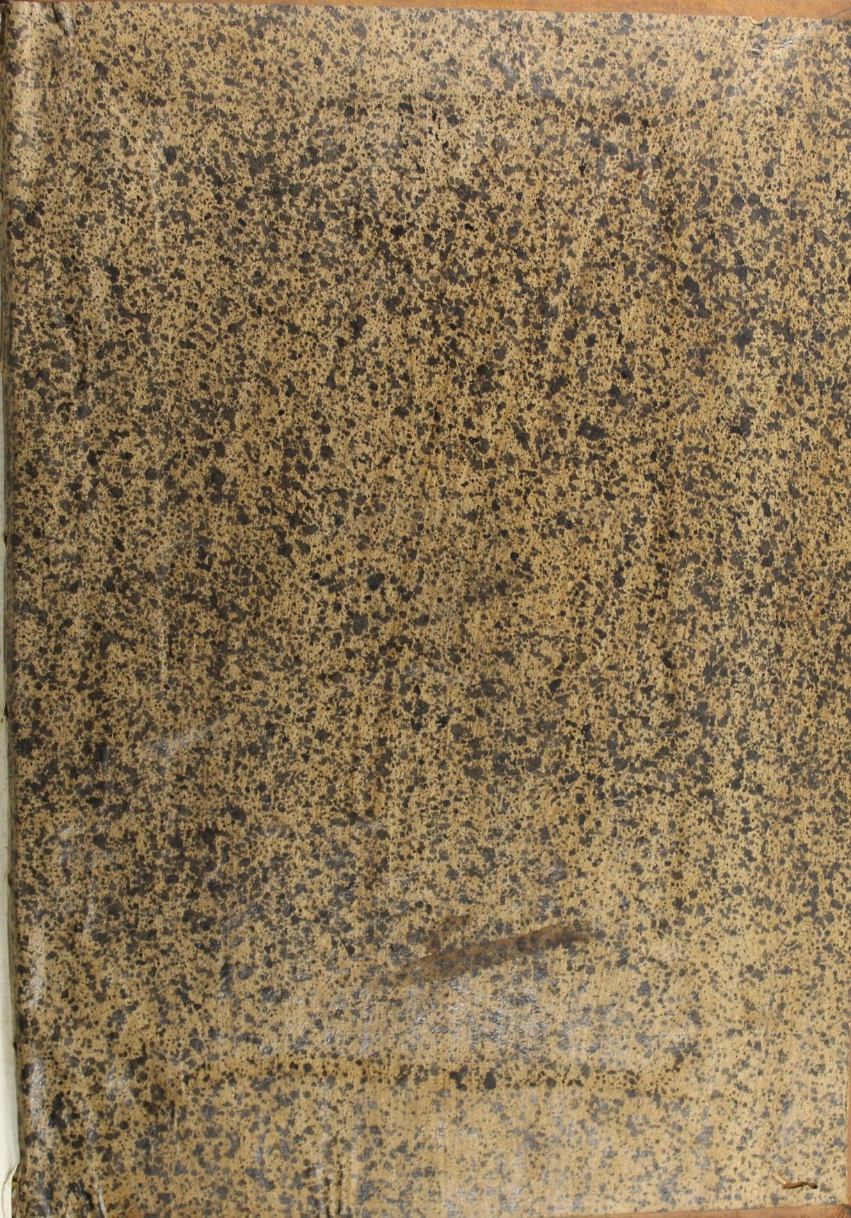 Applicati ai risguardi vi sono dei fogli di carta a colla sbruffata. Il motivo, che presenta schizzi minuti, è stato ottenuto spruzzando il colore marrone con una spazzola sfregata più colte su una griglia metallica.