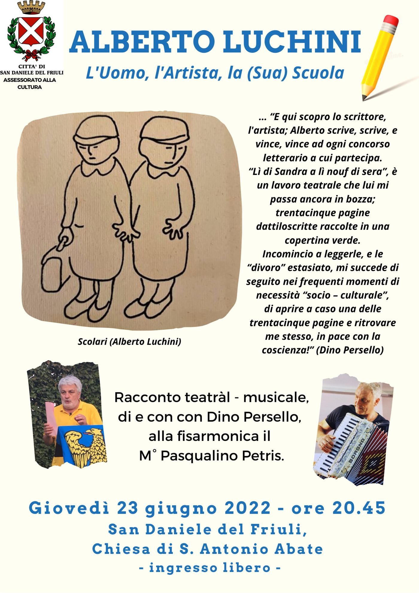 Dino Persello rende omaggio alla figura di Alberto Luchini con uno spettacolo teatrale-musicale accompagnato alla fisarmonica dal Maestro Pasqualino Petris.