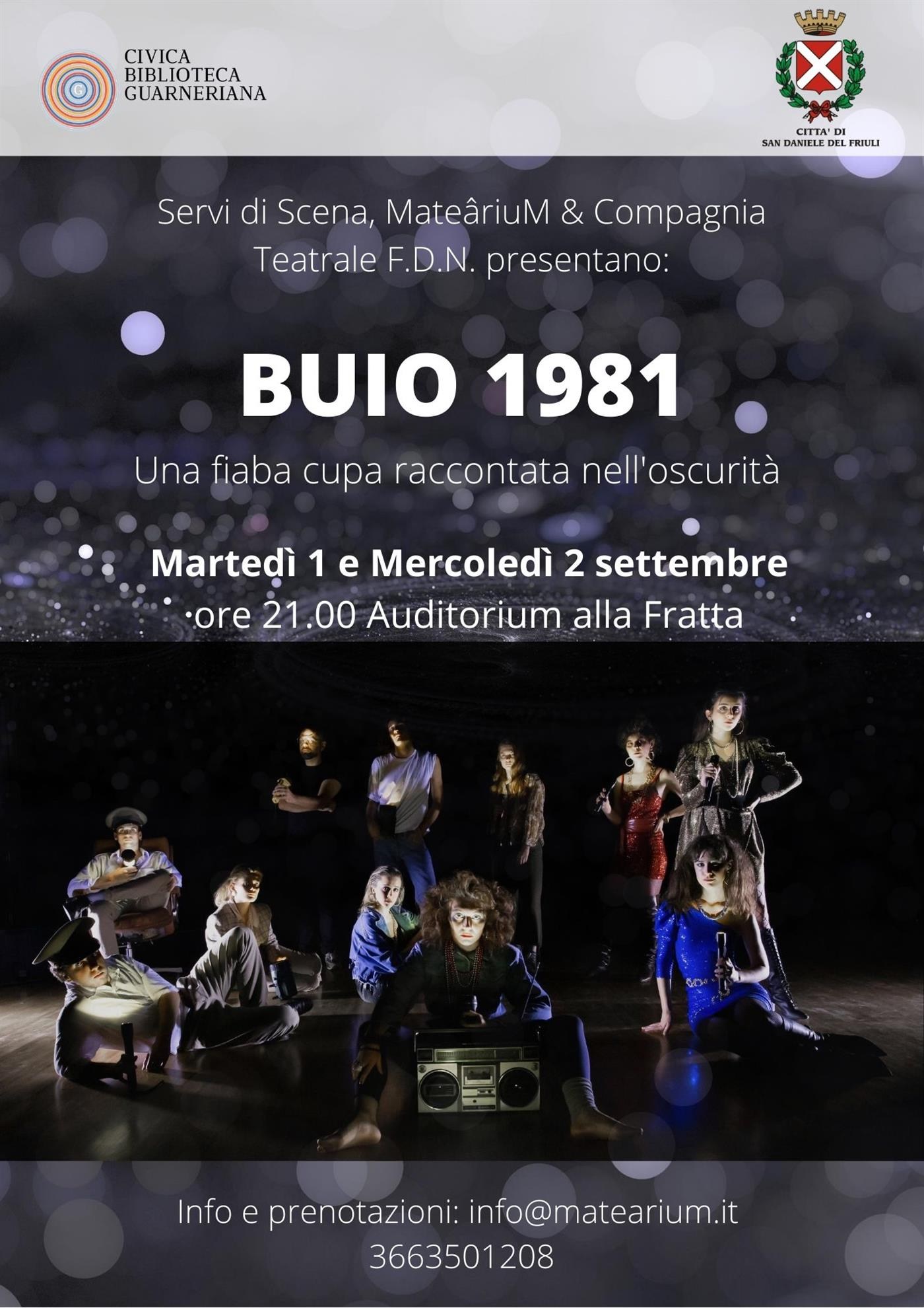 Lo spettacolo è una produzione Servi di Scena, MateariuM e Compagnia Teatrale F.D.N. con il sostegno del Comune di San Daniele e Civica Biblioteca Guarneriana.