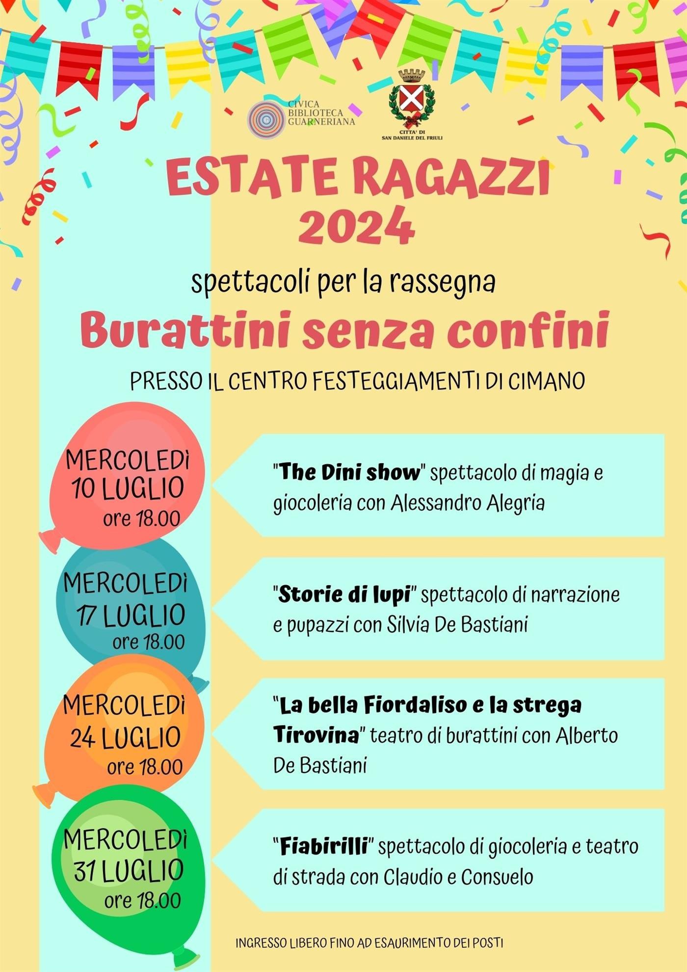 Tutti i mercoledì, dal 10 luglio alle ore 18.00, presso il centro festeggiamenti di Cimano, ritornano gli spettacoli per la rassegna:
