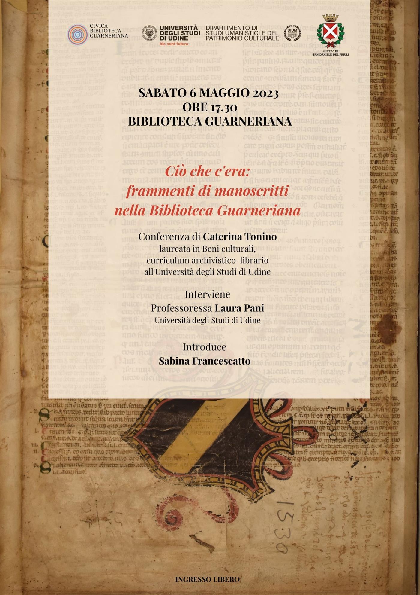 SABATO 6 MAGGIO 2023 ORE 17.30 - BIBLIOTECA GUARNERIANA