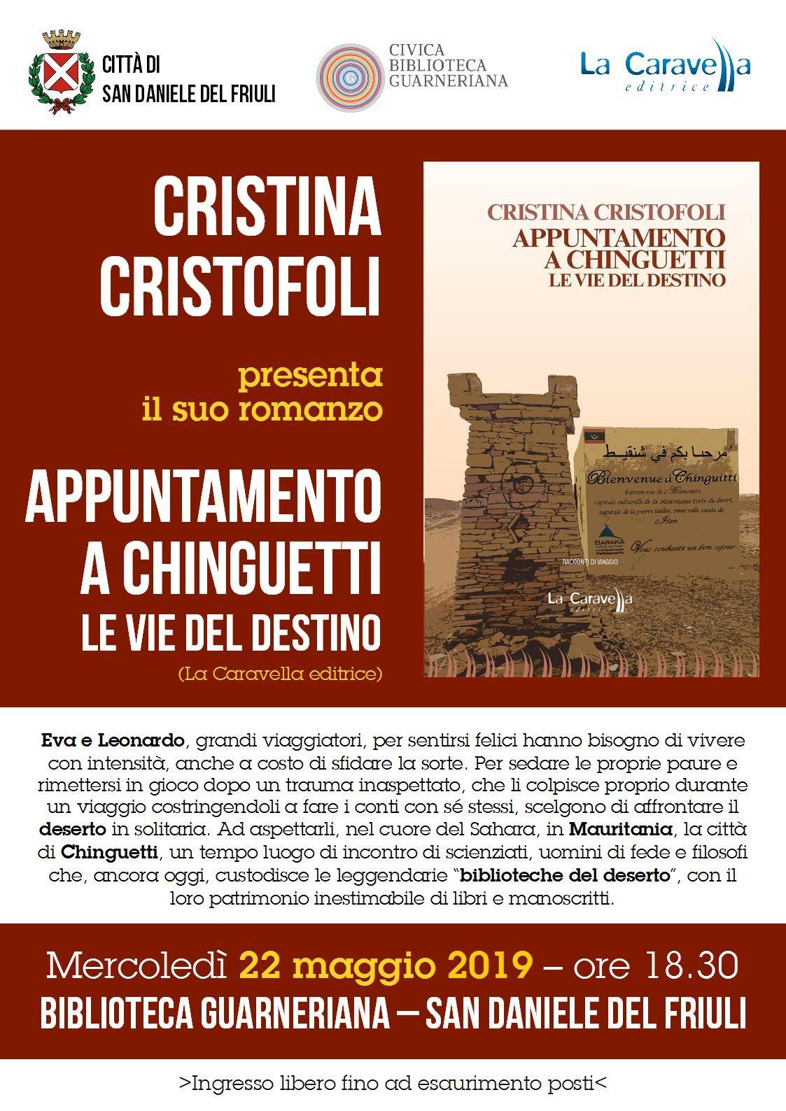 Incontro con Cristina Cristofoli per la presentazione del suo romanzo "Appuntamento a Chinguetti. Le vie del destino" (La Caravella editrice).