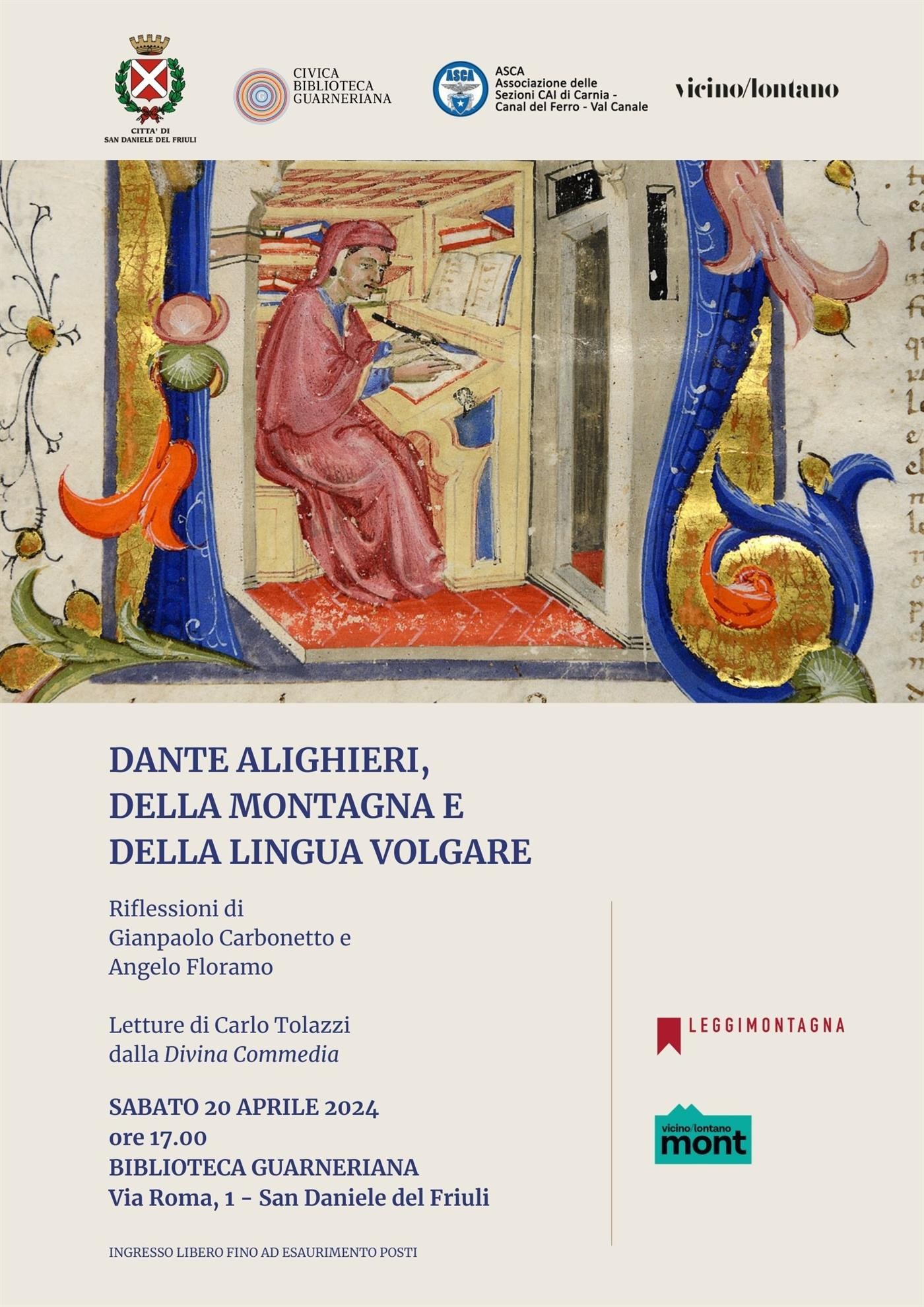 Gianpaolo Carbonetto e Angelo Floramo, partendo dal contesto storico di Dante Alighieri, ci guideranno lungo un percorso dedicato alla montagna e alla lingua volgare.