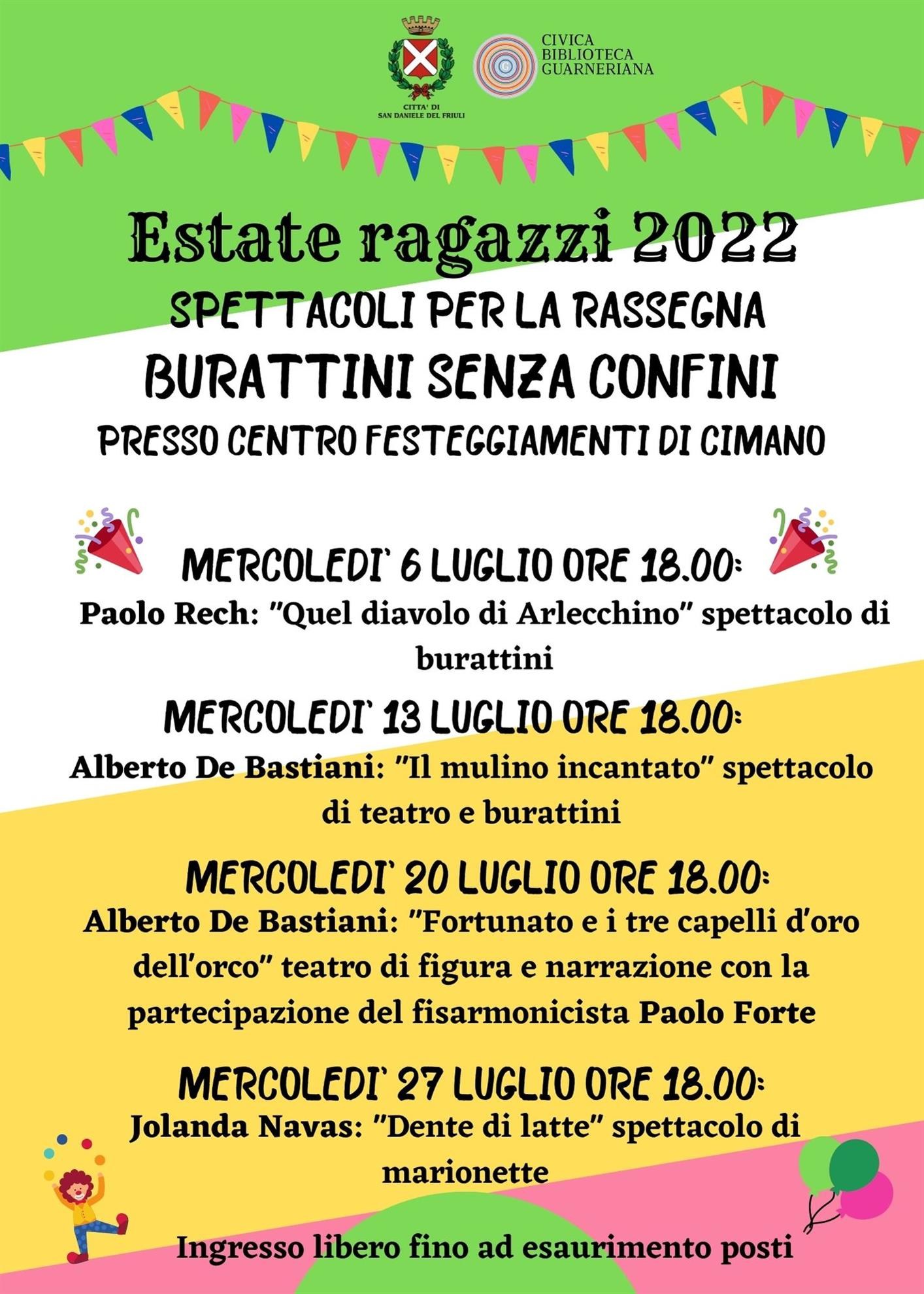 Per la rassegna Burattini senza confini, tutti i mercoledì di luglio andrà in scena il divertimento in compagnia di burattini e giocolieri!