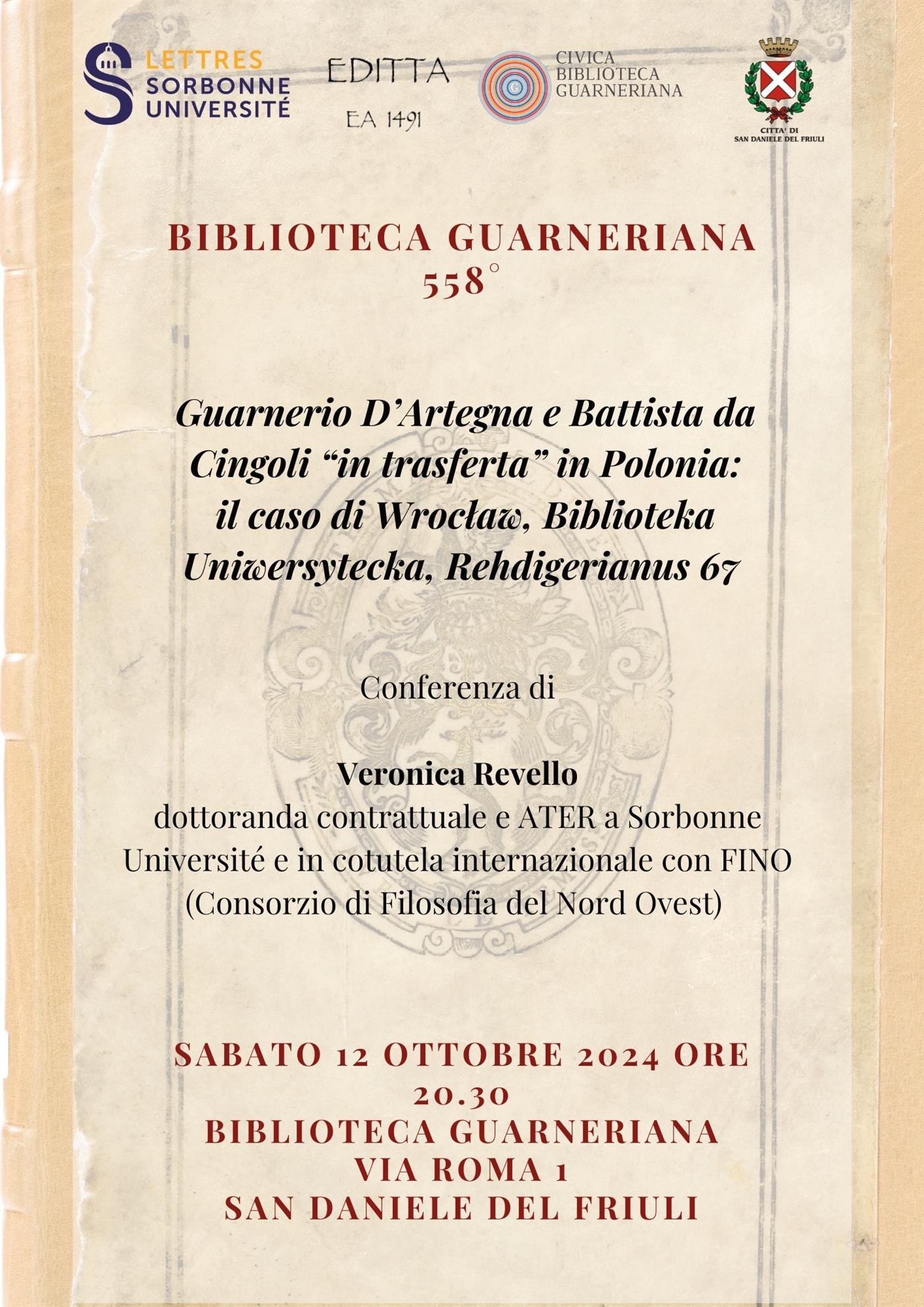 In occasione del 558° della fondazione della biblioteca, vi aspettiamo SABATO 12 OTTOBRE 2024 alle ore 20.30 in Guarneriana per la conferenza: