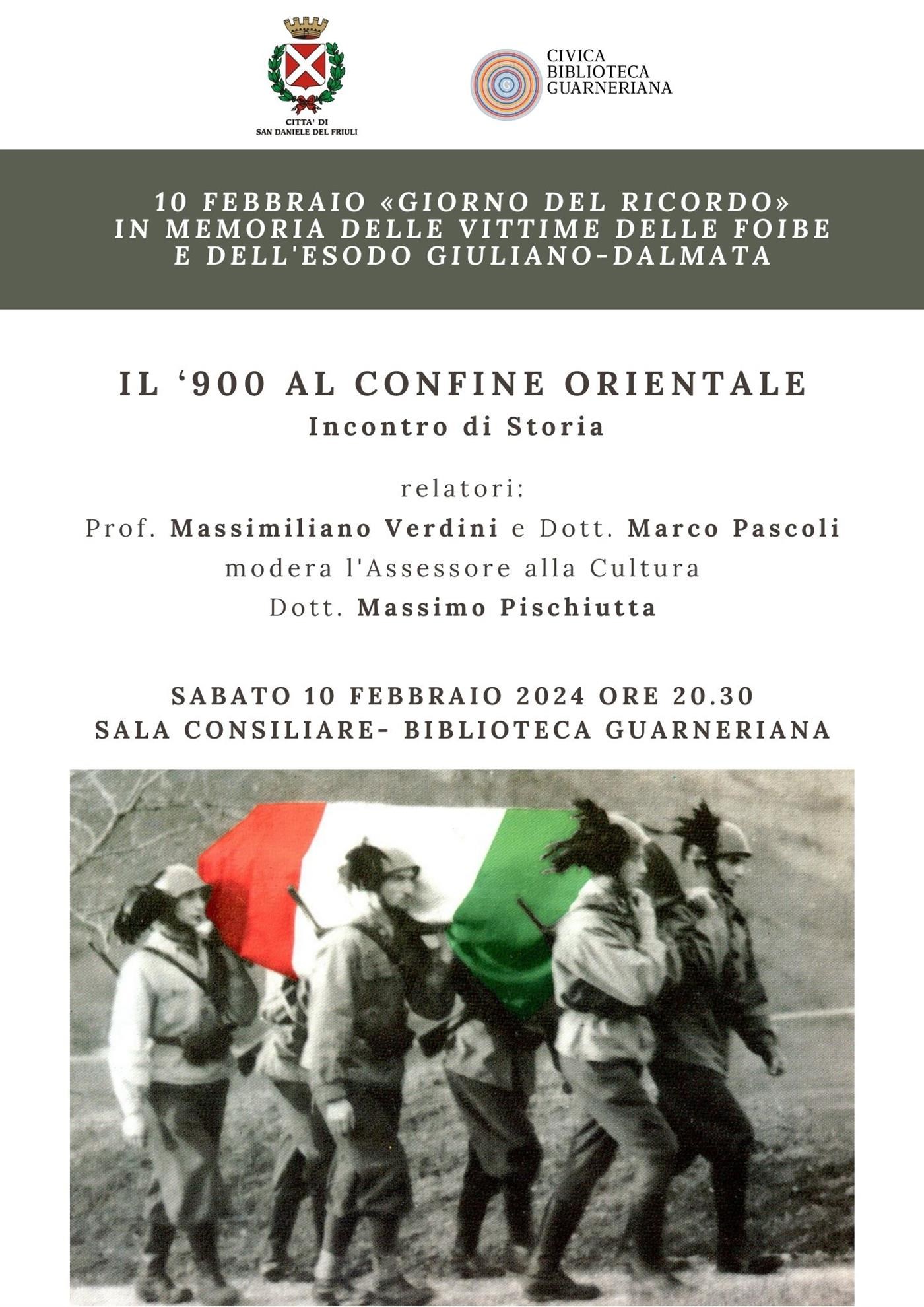 In occasione del “Giorno del Ricordo” in memoria delle vittime delle foibe e dell’esodo giuliano-dalmata, SABATO 10 FEBBRAIO 2024 alle ore 20.30 in SALA CONSILIARE si terrà la conferenza: