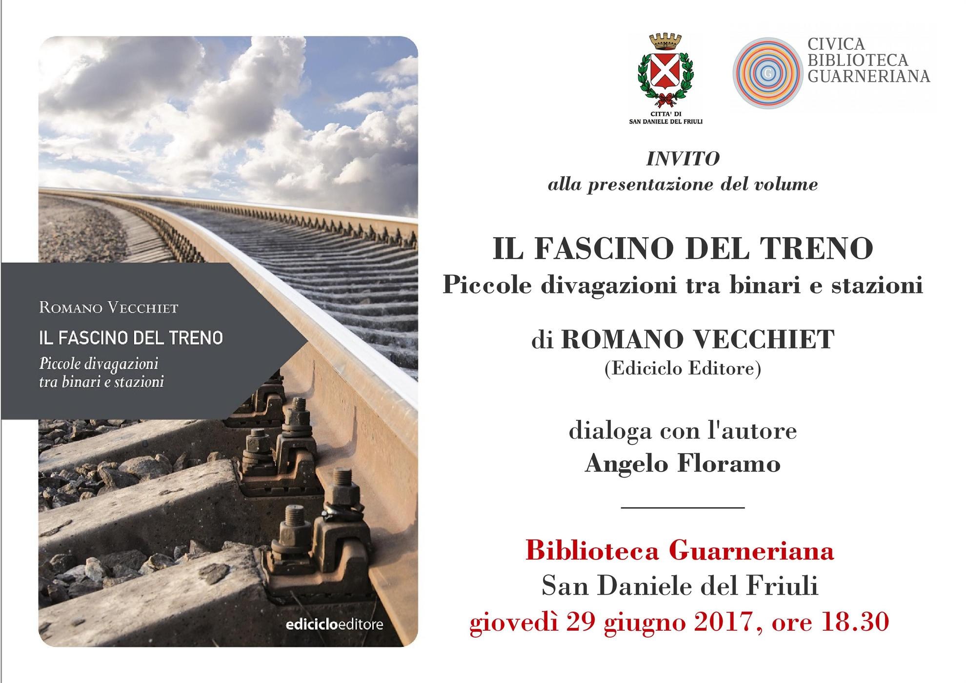 Angelo Floramo dialoga con Romano Vecchiet, sandanielese, Direttore della Biblioteca Civica "V.Joppi" di Udine e autore del libro “Il fascino del treno. Piccole divagazioni tra binari e stazioni”, edito da Ediciclo editore.