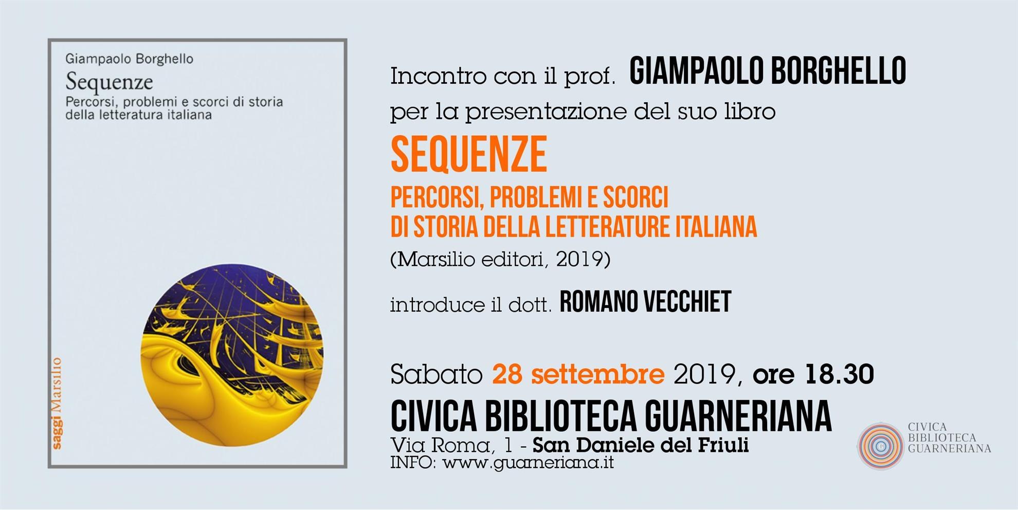 per la presentazione del suo libro "Sequenze. Percorsi, problemi e scorci della Letteratura italiana"