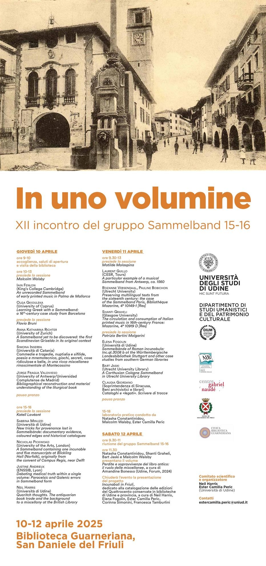 Dal 10 al 12 aprile 2025 la Biblioteca Guarneriana ospita il seminario IN UNO VOLUMINE: XII INCONTRO DEL GRUPPO SAMMELBAND 15-16