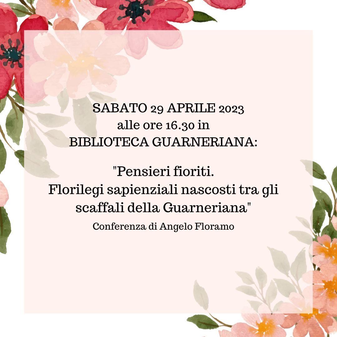 Angelo Floramo terrà la conferenza Pensieri fioriti. Florilegi sapienzali nascosti tra gli scaffali della Guarneriana, sabato 29 aprile 2023 alle ore 16.30 in Guarneriana.