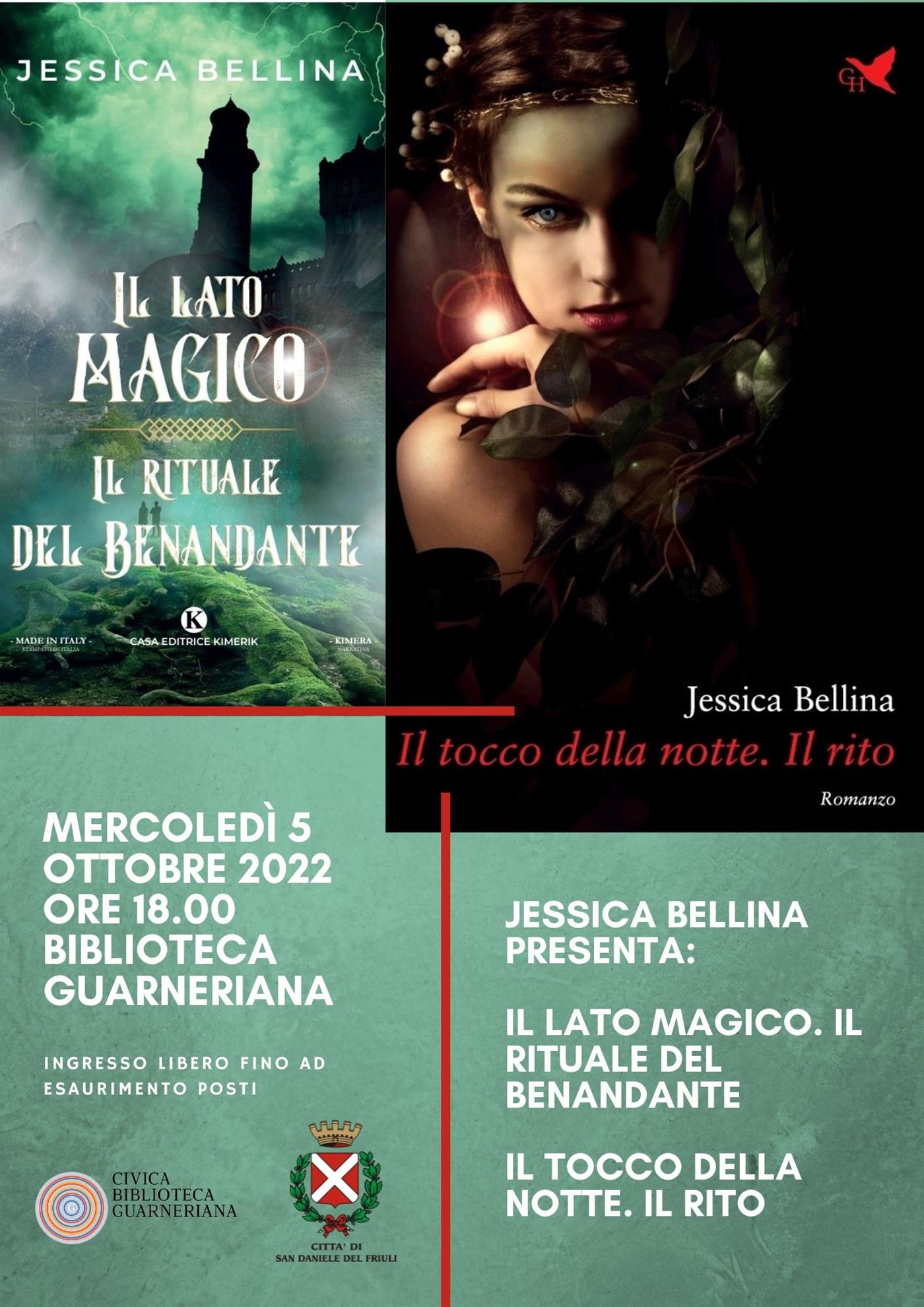 Scrittrice di urban fantasy ambientati in Friuli, la gemonese Jessica Bellina sarà ospite in biblioteca Guarneriana per presentare i suoi libri Il lato magico. Il rituale del Benandante e Il tocco della notte. Il rito, mercoledì 5 ottobre 2022 alle ore 18.00.