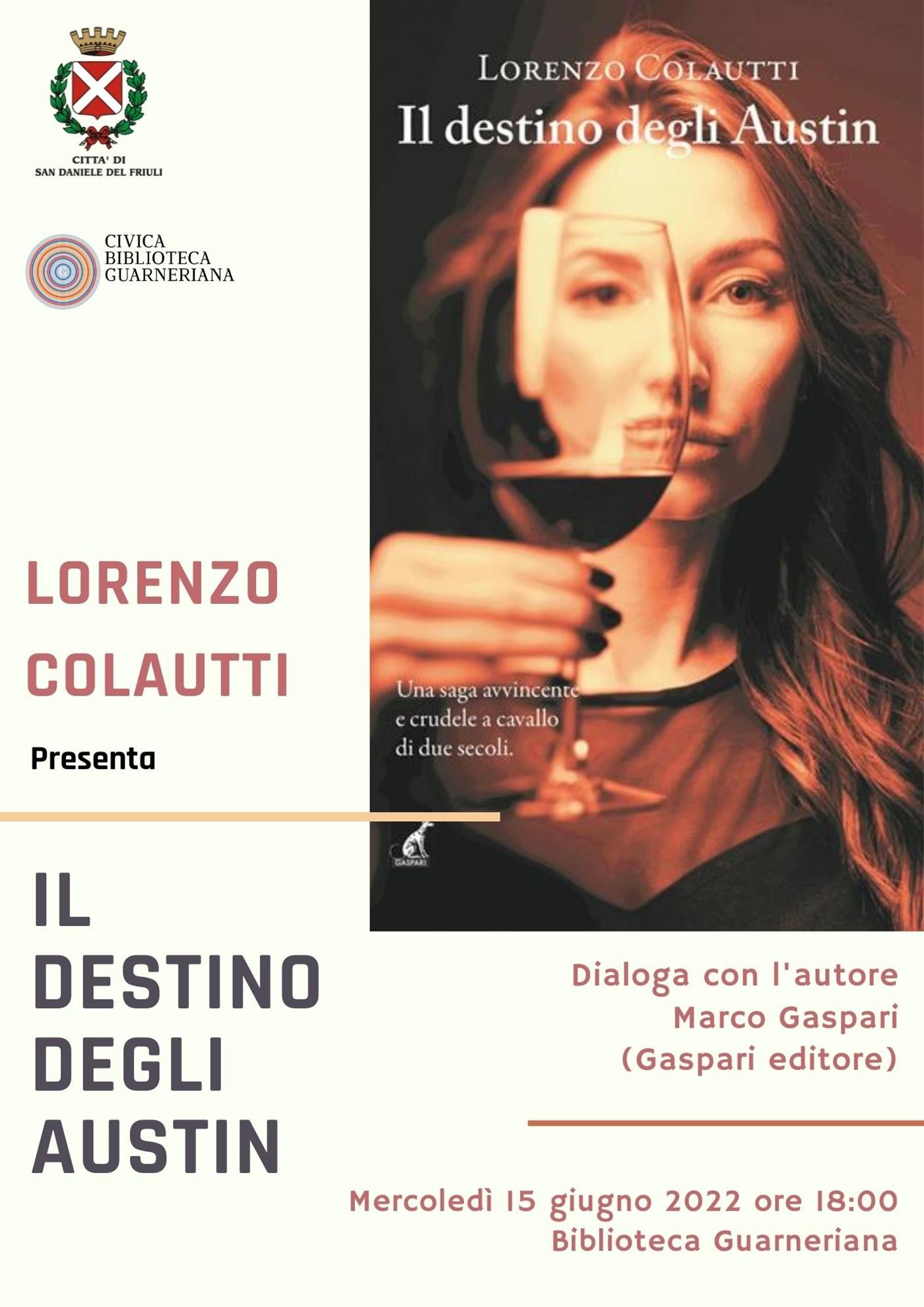 Mercoledì 15 giugno 2022 alle ore 18.00 in Biblioteca Guarneriana, Lorenzo Colautti presenta il libro Il destino degli Austin (Gaspari editore).
