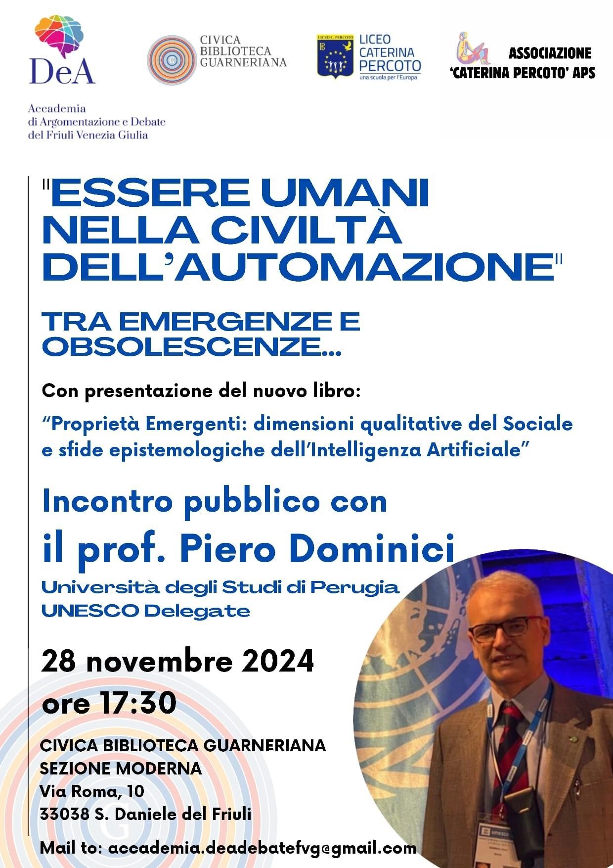 "Le straordinarie scoperte scientifiche e innovazioni tecnologiche degli ultimi decenni, oltre a d averci dato la possibilità di controllare sempre meglio i meccanismi della nostra evoluzione biologica, ci hanno fatto entrare nel tempo della massima imprevedibilità, obsolescenza e incertezzea.