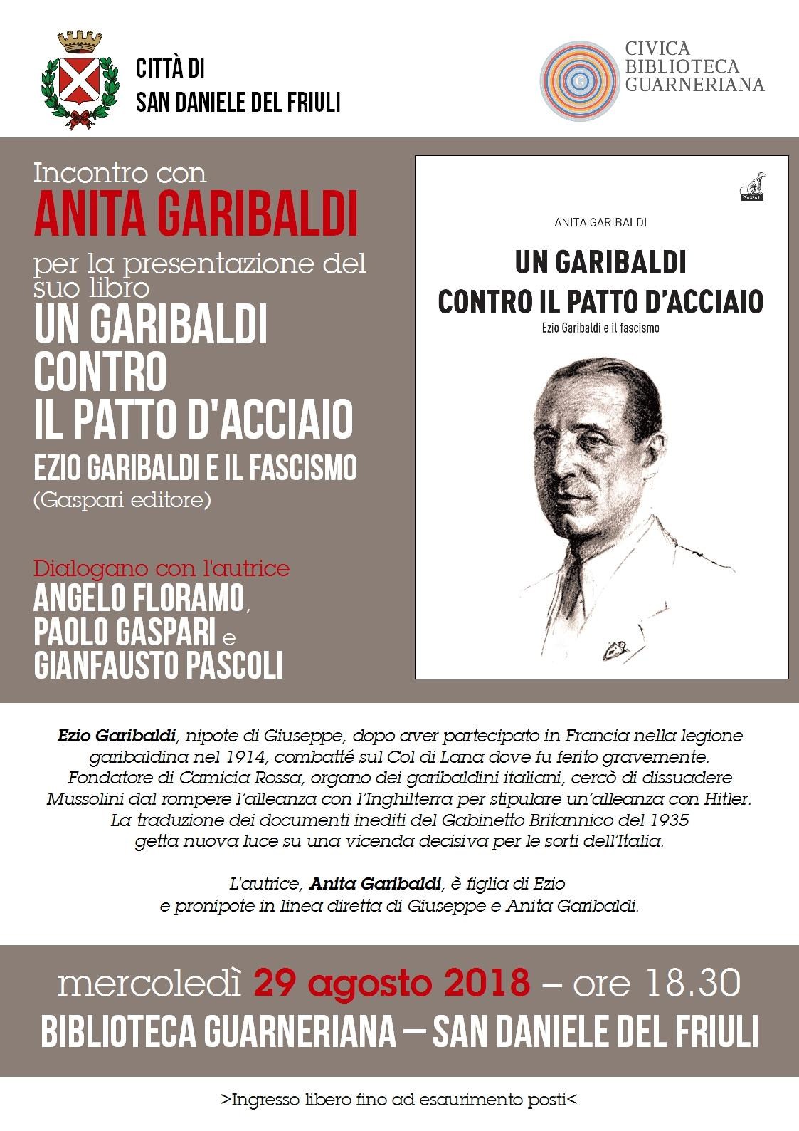 Incontro con Anita Garibaldi per la presentazione, in anteprima, del suo libro "Un Garibaldi contro il Patto d'Acciaio. Ezio Garibaldi e il fascismo" (Gaspari editore, 2018).