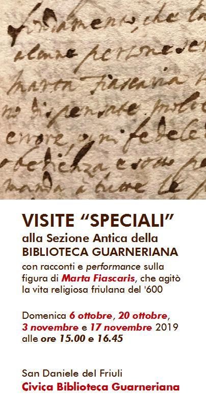 Oltre alla visita guidata, che si concentrerà sui documenti archivistici relativi alla comunità di San Daniele conservati in Guarneriana, i visitatori assisteranno ad una performance ad opera dell'Associazione Servi di Scena e del suo collettivo di drammaturghi appartenenti al progetto MateâriuM dedicata proprio alla mistica, ribelle sandanielese.