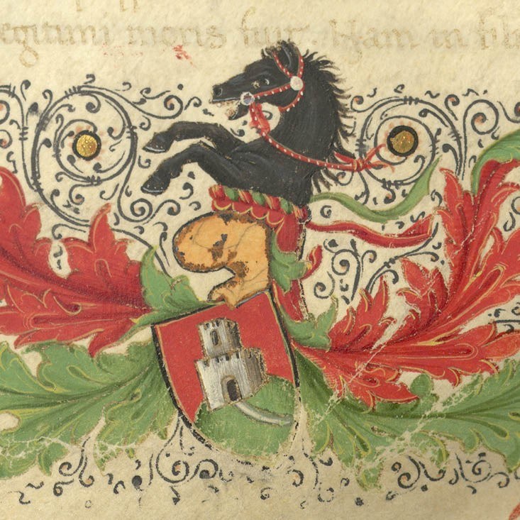 Si tratta di un codice in pergamena, corposissimo, con oltre 400 carte, che si apre a carta 19 recto, con una ricchissima decorazione “all’antica” in cui lo stemma di Guarnerio, committente, si inserisce nel margine inferiore di una splendida cornice con decorazione floreale e a nastro intrecciato, e che prosegue con numerosissime iniziali decorate, punteggiate e filettate, con ornato ad intreccio e terminazioni a foglie di vario colore come quelle a carta 135 verso.